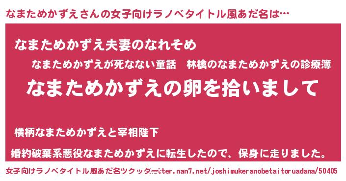 | 男性向けラノベタイトル風あだ名 | 『なまためかずえの嫁は女の子じゃないと思った?』 |
