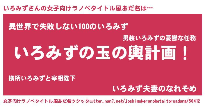 | 男性向けラノベタイトル風あだ名 | 『転生したらいろみずだった件』 |
