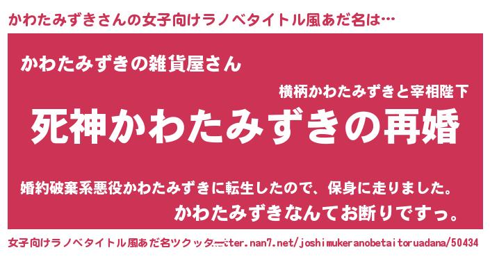 | 男性向けラノベタイトル風あだ名 | 『ノーゲーム・ノーカワタミズキ』 |