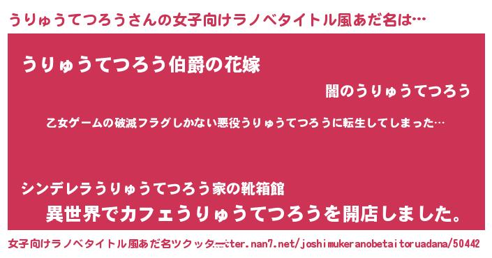 | 意味不明あだ名 | 『住所不定無職うりゅうてつろう(14歳)』 |