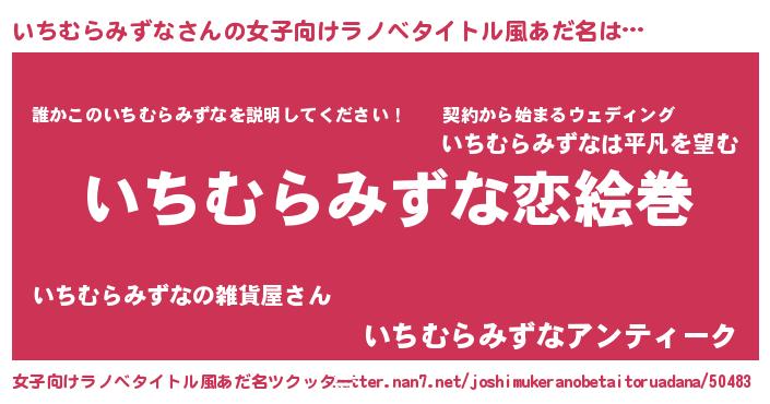 | 男性向けラノベタイトル風あだ名 | 『ノーゲーム・ノーイチムラミズナ』 |
