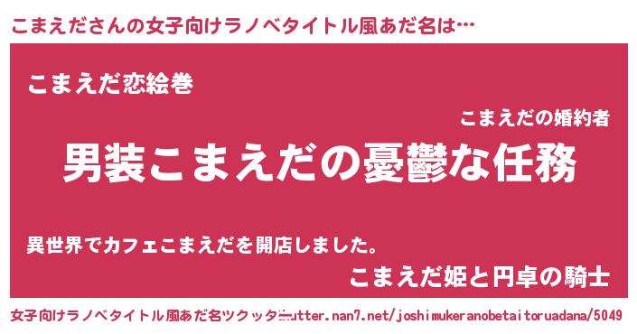 | 男性向けラノベタイトル風あだ名 | 『うちのこまえだが世界を掌握している!』 |