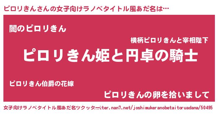 | 男性向けラノベタイトル風あだ名 | 『ピロリきんの憂鬱』 |
