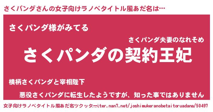 | 男性向けラノベタイトル風あだ名 | 『誰もが恐れるあのさくパンダが、ぼくの専属メイドになるようです。』 |