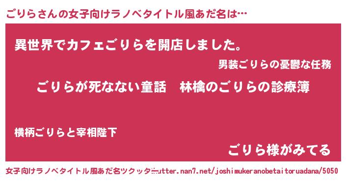 | 男性向けラノベタイトル風あだ名 | 『魔弾の王とごりら』 |