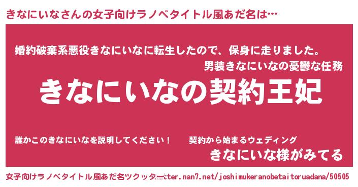 | 男性向けラノベタイトル風あだ名 | 『きなにいなという概念が存在しない退屈な世界 』 |