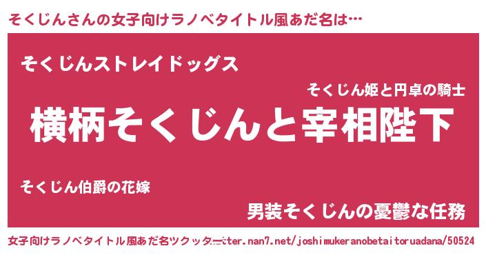 | 男性向けラノベタイトル風あだ名 | 『そくじんに滅ぼされるだけの簡単なお仕事です』 |