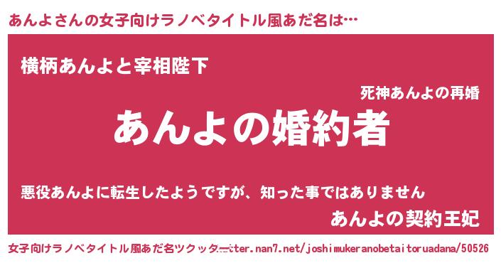 | 男性向けラノベタイトル風あだ名 | 『うちの娘の為ならば、俺はもしかしたらあんよも倒せるかもしれない。』 |