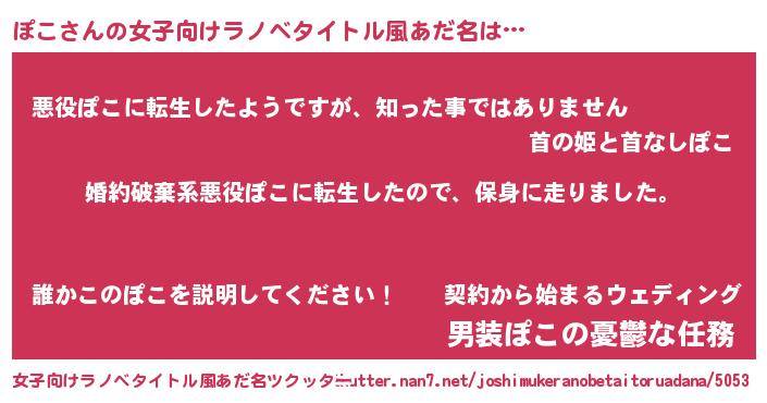 | 男性向けラノベタイトル風あだ名 | 『転生したらぽこだった件』 |