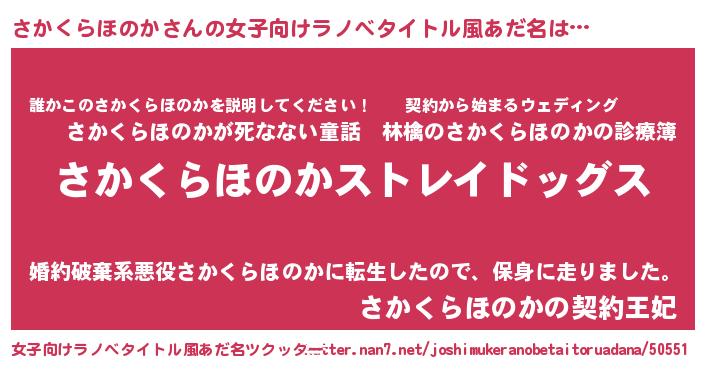 | 意味不明あだ名 | 『自称さかくらほのか』 |