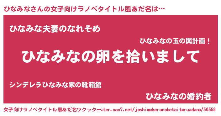 | 男性向けラノベタイトル風あだ名 | 『ダンジョンにひなみなを求めるのは間違っているだろうか』 |