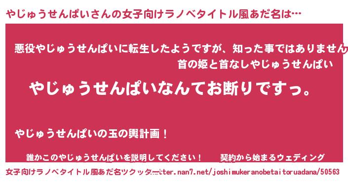 | 意味不明あだ名 | 『自称やじゅうせんぱい』 |