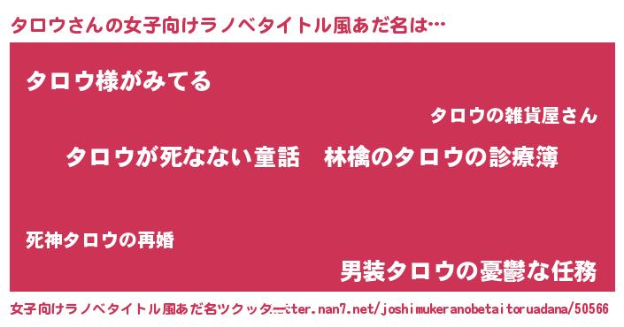 | 男性向けラノベタイトル風あだ名 | 『魔弾の王とタロウ』 |