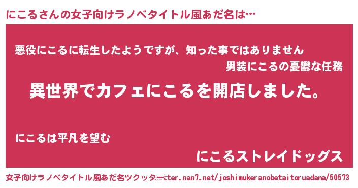 | ヘコむあだ名 | 『にこる(遠い目)』『にこを』 |