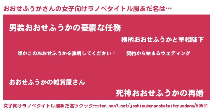 | 肩書あだ名 | 『おおせふうか御曹司』 |