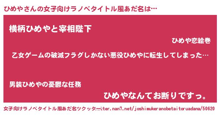 | 男性向けラノベタイトル風あだ名 | 『この素晴らしい世界にひめやを!』 |