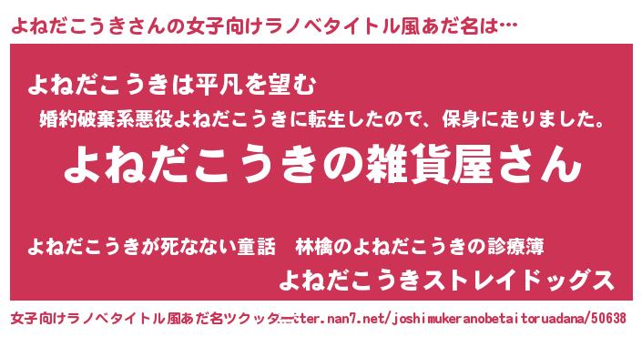 | 男性向けラノベタイトル風あだ名 | 『やはりよねだこうきの青春ラブコメはまちがっている 』 |