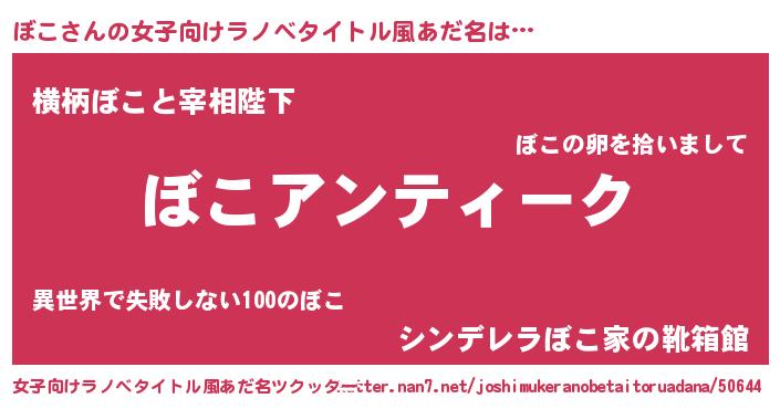 | 男性向けラノベタイトル風あだ名 | 『魔法科高校のぼこ』『緋弾のボコ』 |