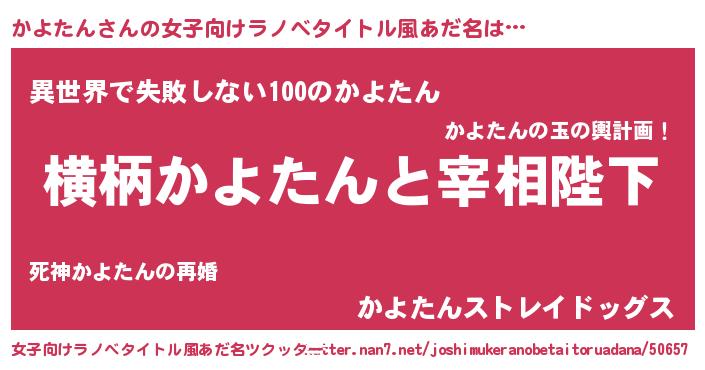 | 男性向けラノベタイトル風あだ名 | 『かよたんに滅ぼされるだけの簡単なお仕事です』 |