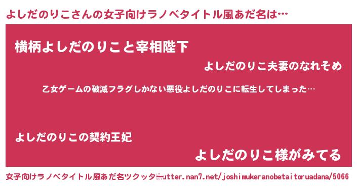 | 男性向けラノベタイトル風あだ名 | 『この素晴らしい世界によしだのりこを!』 |