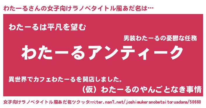 | 男性向けラノベタイトル風あだ名 | 『魔法科高校のわたーる』 |