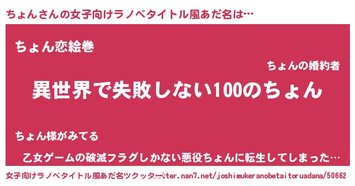| 男性向けラノベタイトル風あだ名 | 『ちょんという概念が存在しない退屈な世界 』 |