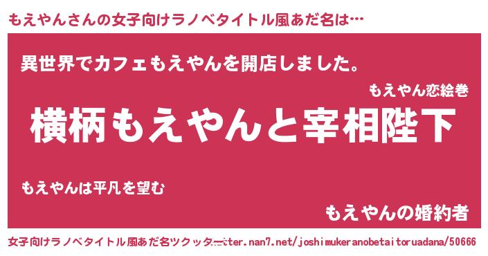 | 胡散臭い通販商品みたいなあだ名 | 『来世でも幸せになれる水素水…その名も「もえやん」』 |