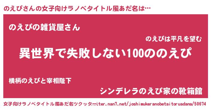 | 胡散臭い通販商品みたいなあだ名 | 『絶対に幸福をもたらす水素水…その名も「のえぴ」』 |
