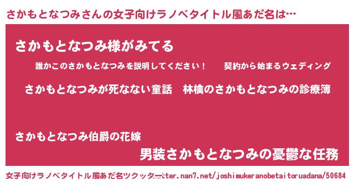 男性向けラノベタイトル風あだ名 | 『魔弾の王とさかもとなつみ』 |