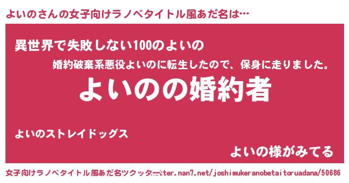 | ファンタジー風あだ名 | 『エターナルヨイノー』『ヨイディッシュ』 |