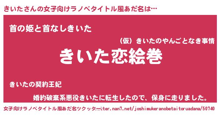 | 男性向けラノベタイトル風あだ名 | 『ノーゲーム・ノーキイタ』 |