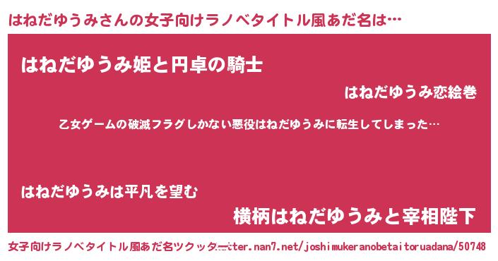 | 胡散臭い通販商品みたいなあだ名 | 『世界中を虜にした100年もののヴィンテージワイン…その名も「はねだゆうみ」』 |