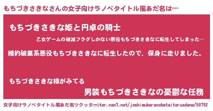 | 男性向けラノベタイトル風あだ名 | 『転生したらもちづきさきなだった件』 |