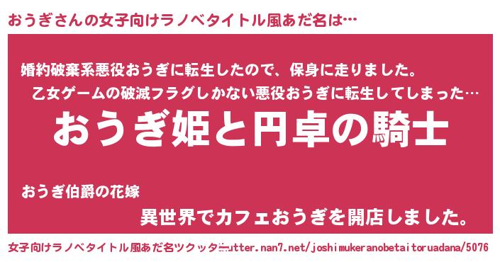 | 男性向けラノベタイトル風あだ名 | 『オウギアートオンライン』 |