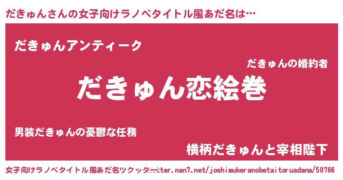 | 男性向けラノベタイトル風あだ名 | 『おまえをオタクにしてやるから、俺をだきゅんにしてくれ! 』 |