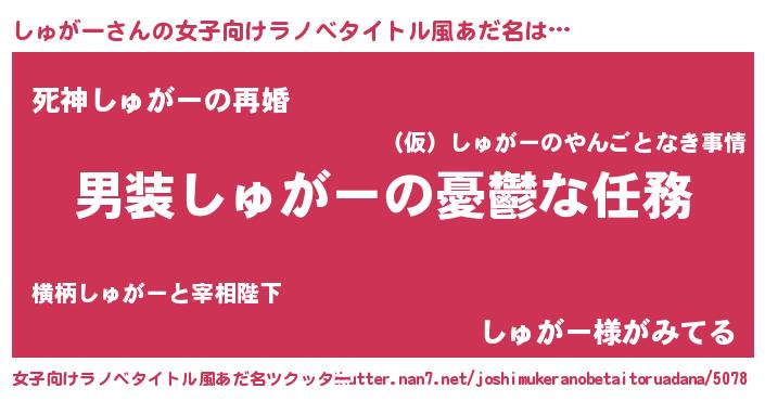 | 男性向けラノベタイトル風あだ名 | 『うちのしゅがーが世界を掌握している!』 |