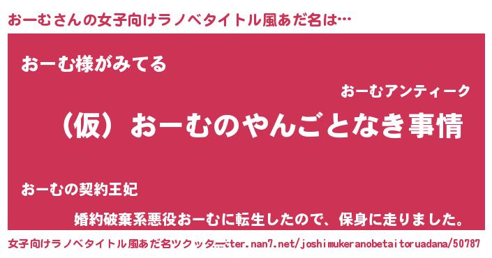 | 意味不明あだ名 | 『ペロリンおーむ』『たけのこ科おーむ属』 |
