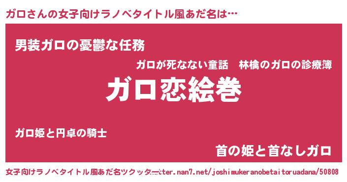 | 男性向けラノベタイトル風あだ名 | 『ノーゲーム・ノーガロ』 |