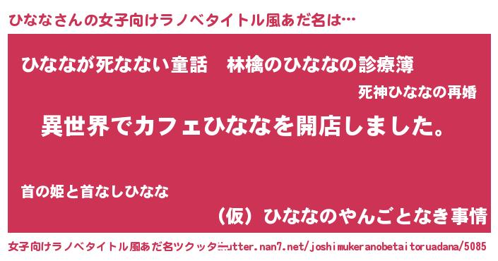 | ヒーロー風カッコイイあだ名 | 『ネオヒナナ』『仮面ヒナダー』 |