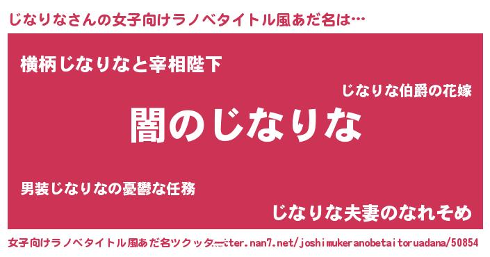| 男性向けラノベタイトル風あだ名 | 『Re:じなりなから始める異世界生活』 |