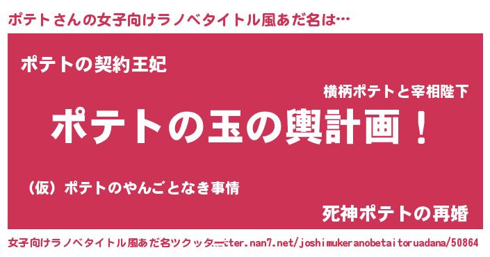 | 男性向けラノベタイトル風あだ名 | 『転生したらポテトだった件』 |