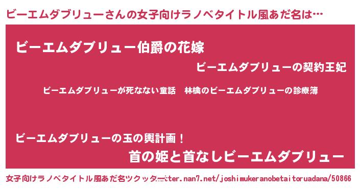 | 欧米人風あだ名 | 『ダレノガレビーエムダブリュー』 |