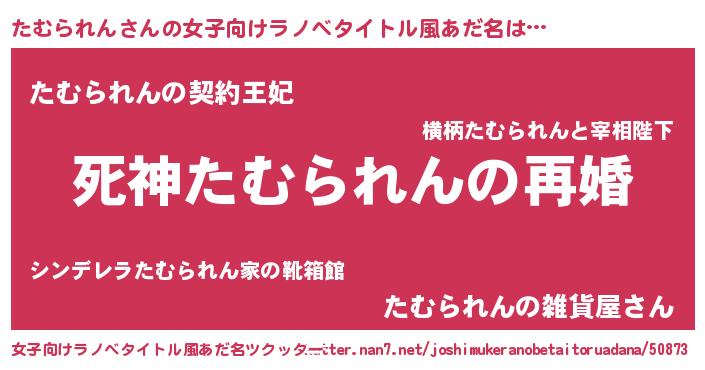 | 男性向けラノベタイトル風あだ名 | 『ノーゲーム・ノータムラレン』 |