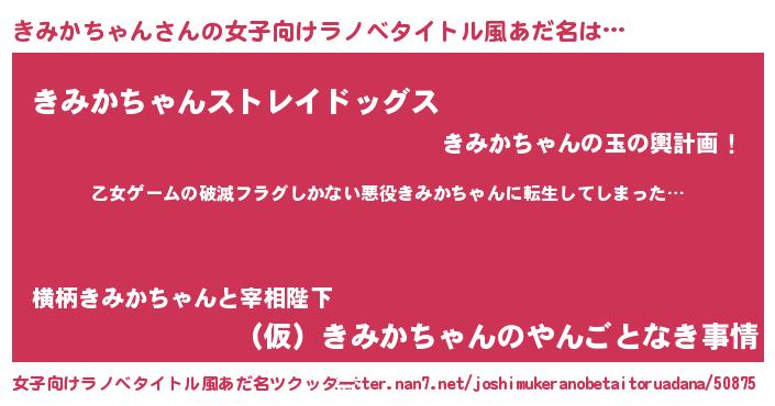 男性向けラノベタイトル風あだ名 | 『この素晴らしい世界にきみかちゃんを!』 |