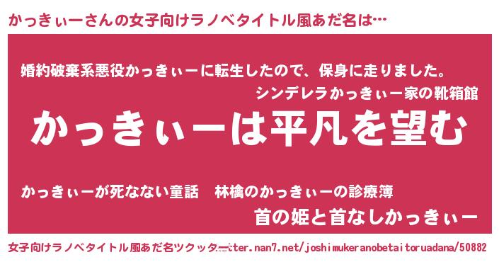 | 男性向けラノベタイトル風あだ名 | 『ダンジョンにかっきぃーを求めるのは間違っているだろうか』 |