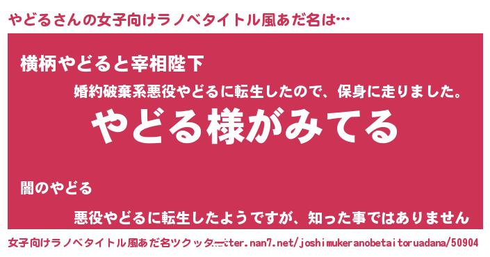 | ピコ太郎風あだ名 | 『ヤド五郎』『ヤコ十郎』『ヤヤ太郎』 |