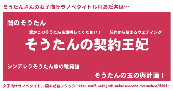 | 男性向けラノベタイトル風あだ名 | 『そうたんという概念が存在しない退屈な世界 』 |