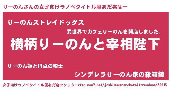 | 男性向けラノベタイトル風あだ名 | 『りーのんに滅ぼされるだけの簡単なお仕事です』 |
