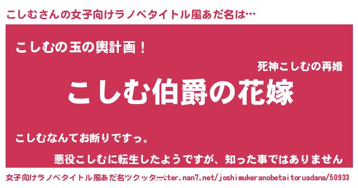 | 男性向けラノベタイトル風あだ名 | 『やはりこしむの青春ラブコメはまちがっている 』 |