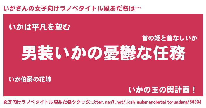 | ヒーロー風カッコイイあだ名 | 『幻影騎士イカ』『ウルトラいかマン』 |